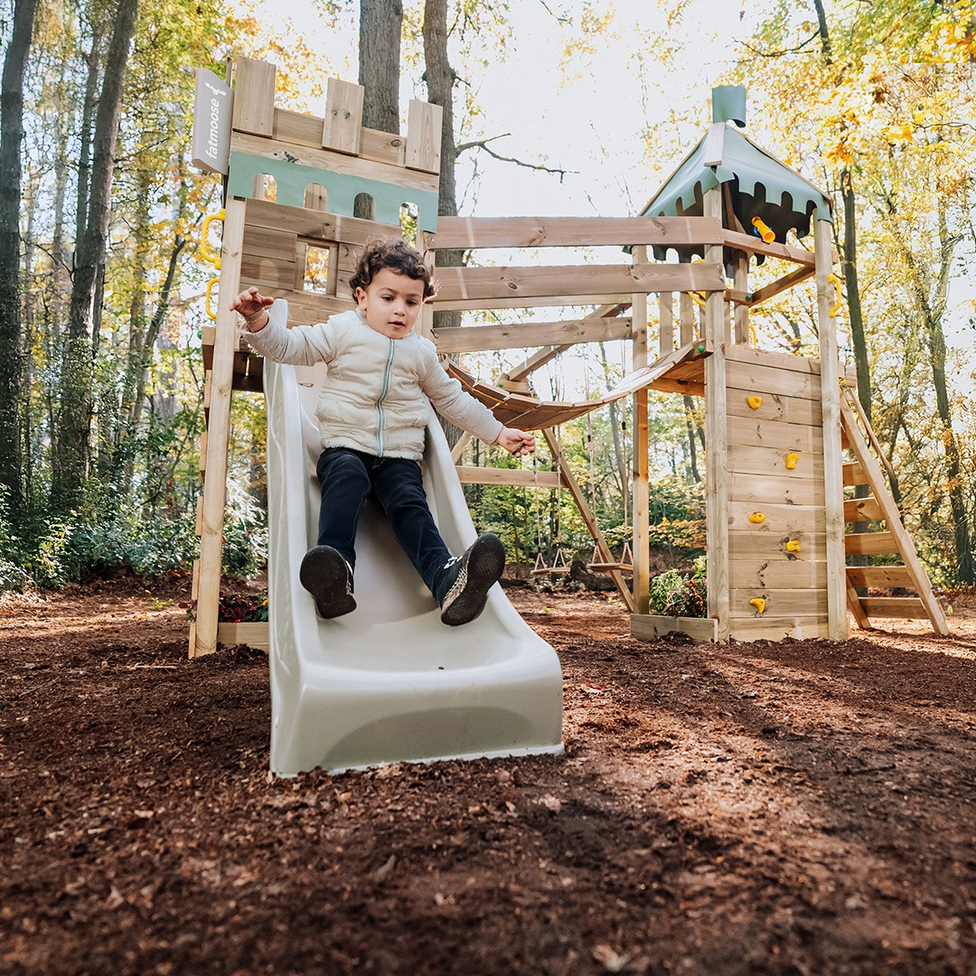 Avec les équipements extérieurs fatmoose, les familles se rendent vite compte que la nature est un environnement de jeu tout simplement beaucoup plus amusant. Chez fatmoose, nous pensons que jouer en plein air est possible toute l'année. Cet espace nous permet non seulement de vivre des moments importants en famille, mais il donne aussi aux enfants l'occasion de jouer, d'apprendre et de grandir dans le meilleur endroit qui soit : au cœur de la nature. Nos aires de jeux, balançoires, toboggans et autres équipements de jeux pour jardin sont conçus de façon à créer un espace de jeu sûr, mais aussi un environnement stimulant pour vos petits explorateurs.